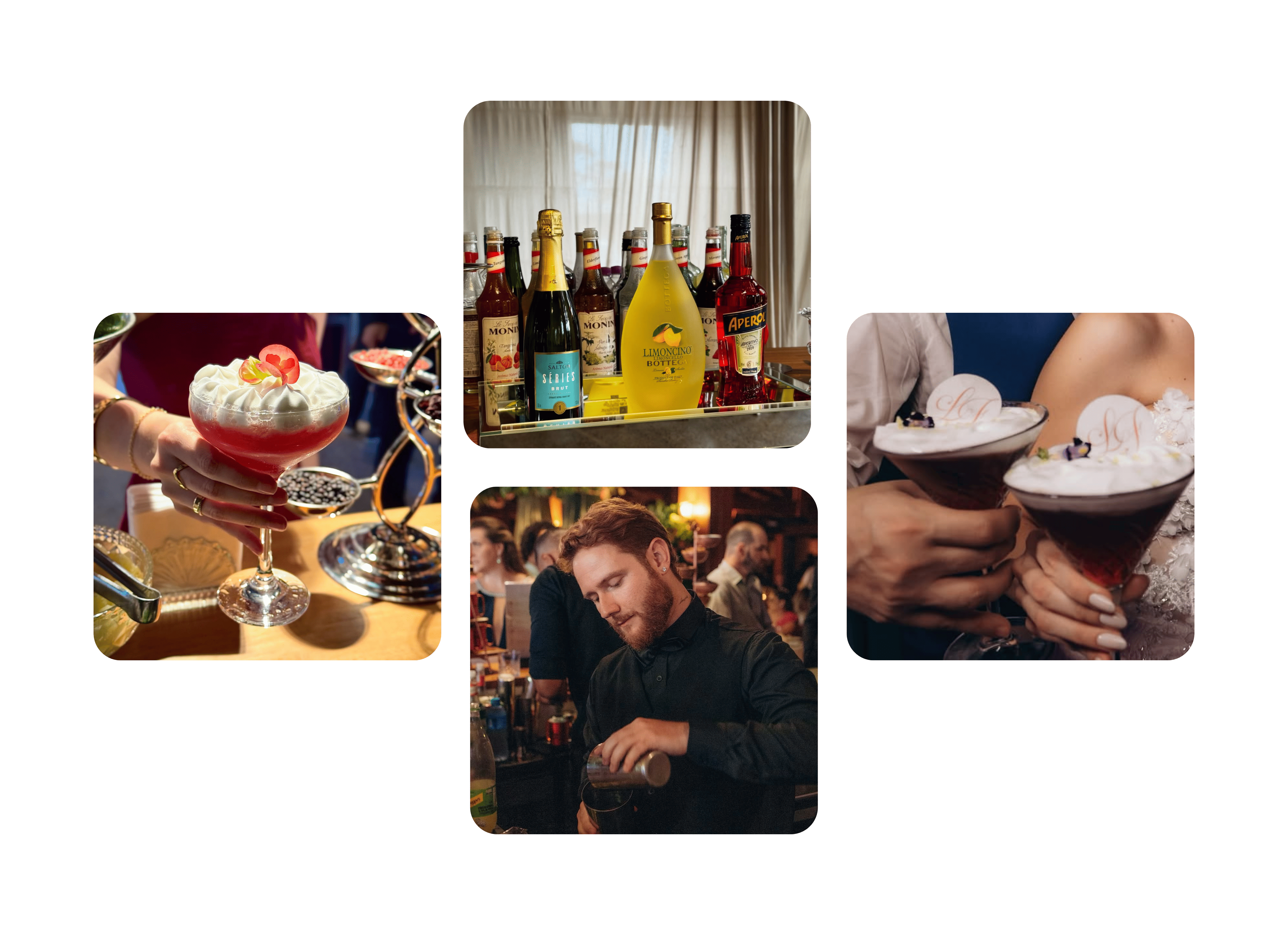 Bar de Negroni, Welcome Drinks, Shots personalizados, Tequileiro, Whiskeria, Máquina de Fumaça ou Bolhas, elementos que surpreendem e encantam.